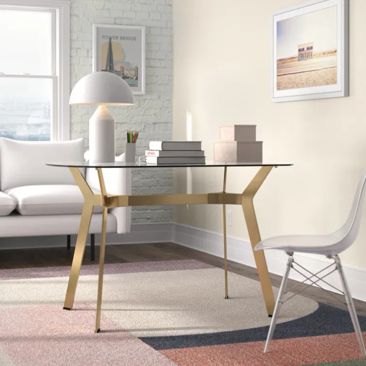 با این میز بیضی شکل 120cm، که دارای رویه شیشهای شفاف و پایههای طلایی متمایز بومرنگی است، فضای خود را ارتقا دهید. طراحی الهام گرفته از سبک اواسط قرن بیستم، ظاهری شیک و مدرن به هر اتاقی میبخشد. رویه شیشهای ضخیم و حرارت دیده آن که برای فضاهای کوچک مناسب است، جلوهای شناور بر روی پایههای فولادی زاویهدار و بادوام با روکش پودری ایجاد میکند. این میز همهکاره و زیبا، برای استفاده در دفتر کار خانگی، ورودی یا اتاق خواب شما ایدهآل است و به طور یکپارچه با سبکهای مختلف دکوراسیون ترکیب میشود.