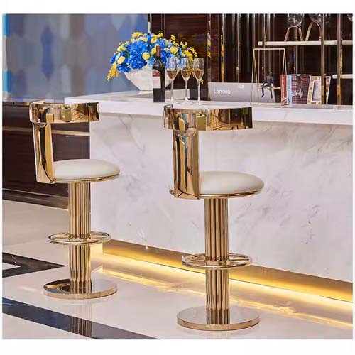 طراحی لوکس با فلز طلایی براق و پشتی باز فلزی. ایده آل برای فضاهای مجلل، لابی ها و کافی شاپ های لاکچری.