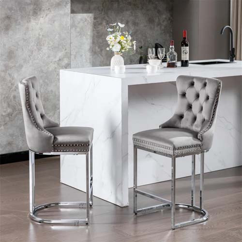 طراحی کلاسیک و لوکس با پارچه مخملی، پشتی دکمهدار، پایه U شکل کروم. مناسب برای فضاهای سلطنتی و مدرن.