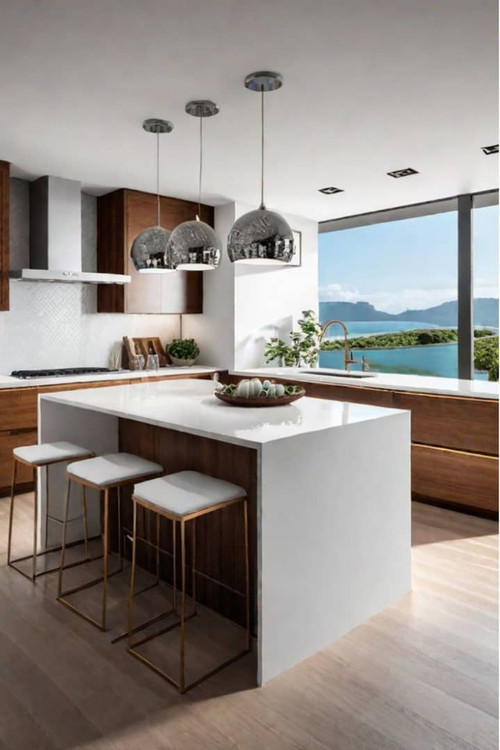 Lumista Waterfall-White Kitchen Island – Walnut Accent Niche